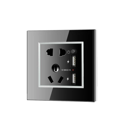 Multifunctional Glass Panel 13 Amp Wall Outlet Socket With 2 USB Port